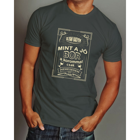 Szülinapi póló, korommal csak nemesedem. Olyan vagyok, mint a jó bor, a korommal csak nemesedem vicces feliratos póló bor kedvelő férfiaknak születésnapra. Ne felejtsd el megadni a születési évet ami a termékre fog kerülni. 100% pamut póló több színben, é