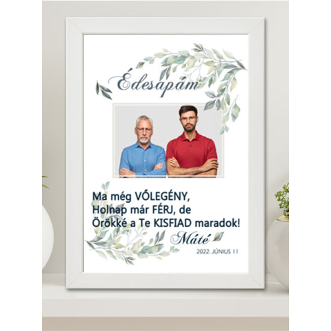 Szülőköszöntő ajándék, nagy falikép esküvőre édesanyáknak, édesapáknak, örömanyának és örömapának. Elegáns, különleges ajándék esküvőre saját fotótokkal, nevetekkel. Töltsd fel saját fotódat, kérlek ügyelj rá, hogy fekvő tájolású legyen. Tetszőleges fotó