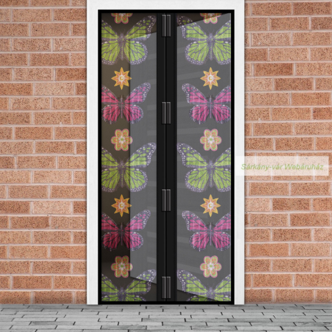 Szúnyogháló függöny ajtóra, mágneses, 100 x 210 cm - virágos pillangós szúnyogháló árgrafikon