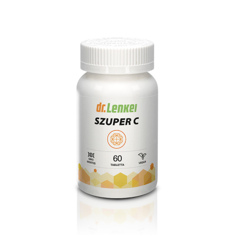 Dr. Lenkei Szuper C-vitamin tabletta, étrend-kiegészítő, 60 db VEGÁN. GMO-MENTES. TEJMENTES. GLUTÉNMENTES. SZÓJAMENTES. Prémium kategóriás C-vitamin, szuper, mert a természet sokszínűségét, gazdagságát hordozza magában. Ez a készítmény a természetben is m