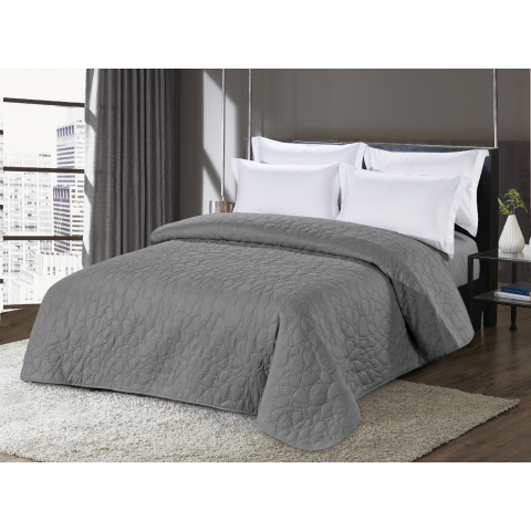 Szürke ágytakaró STONE mintával megvédi az ágyneműt, paplant és párnákat a portól. A meleg éjszakák során könnyű takaróként szolgálhat. Steppelt mintával, amely kavicsokra emlékeztet, stílusos megjelenést kölcsönöz az ágynak, amely könnyen alkalmazkodik bármilyen enteriőrhöz.