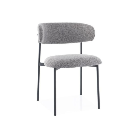 Szürke ELTON étkezőszék fekete lábakkal a modern dizájn kiegészítője minden étkezőnek. A puha, elegáns szürke kárpitnak és a fekete bevonatú, masszív fém szerkezetnek köszönhetően nemcsak stílust, hanem kényelmet és stabilitást is kínál. A szék minimalista designt időtlen eleganciával ötvözi.