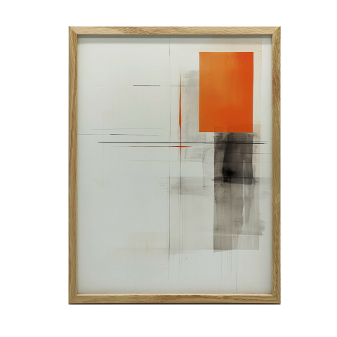 Absztrakt falikép: Szürke és narancs formák játéka - 50x70 cm Díszítse otthonát ezzel a lenyűgöző, modern absztrakt faliképpel! A szürke és narancs árnyalatainak harmonikus kombinációja békés és elegáns hangulatot teremt. A sötét fa keret tökéletesen...