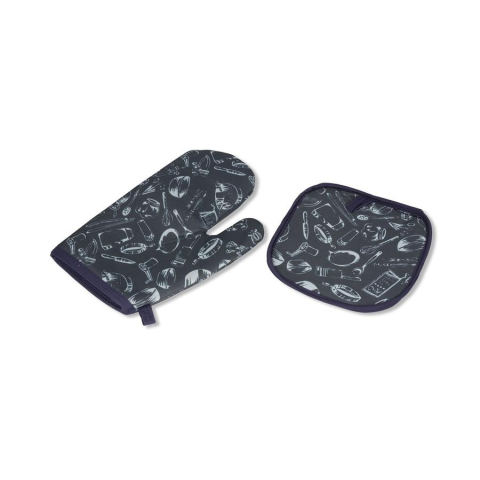 1 kép Szürke mintás edényfogó kesztyű és edényalátét
