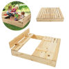 Szürke négyszög alakú tömör fenyőfa homokozó ülésekkel