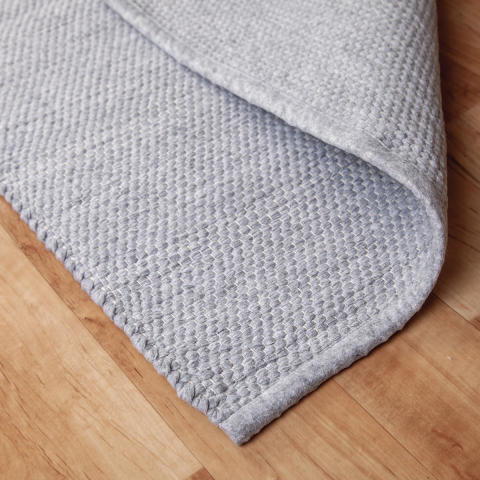 Szürke kézi készítésű rongyszőnyeg 70x150 cm-es méretben, amely kitűnő választás, a ház bármely helyiségéről is legyen szó.