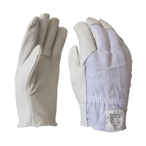 • Sertés finom színbőr tenyér • Köröm- és érvédő • Fehér vászon kézhát és mandzsetta • Kézhát a csuklónál gumírozottMinősítésekCE,EN388:3121