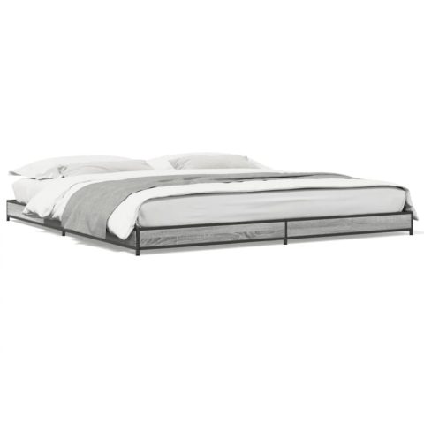 szürke sonoma szerelt fa és fém ágykeret 180 x 200 cm ágy és ágykellék 1 kép