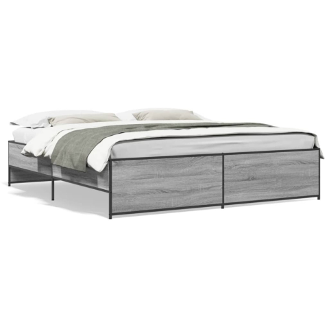 1 kép szürke sonoma szerelt fa és fém ágykeret 180 x 200 cm