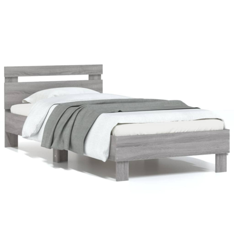 1 kép szürke sonoma színű szerelt fa ágykeret fejtámlával 90 x 200 cm