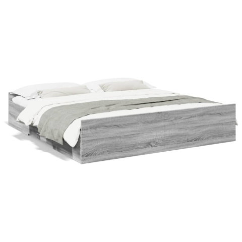 5 kép Szürke sonoma színű szerelt fa ágykeret fiókokkal 180 x 200 cm
