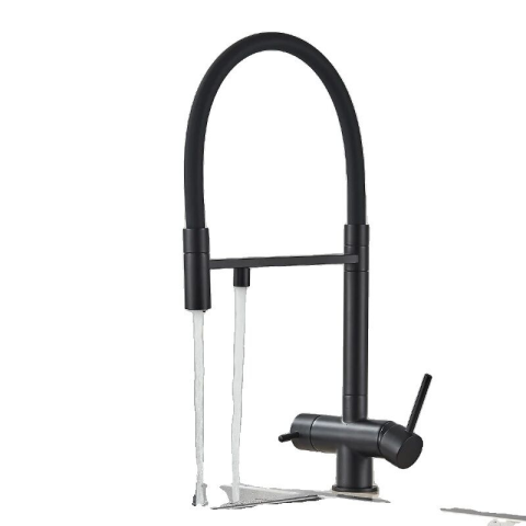 Matt Fekete Szűrt Víz Konyhai Csaptelep - Dupla Karos, Prémium Sárgaréz 💧 Ez a matt fekete szűrt víz konyhai csaptelep ideális választás a modern konyhába, biztosítva a tiszta, szűrt vizet közvetlenül a csapból. A dupla karos kialakítás precíz hőmérs...