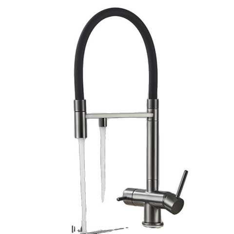 1 kép Szűrt konyhai csaptelep, kihúzható spray, 360¬∞ forgás, tartós sárgaréz szerkezet, szürke