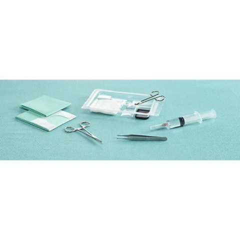 Egyszer használatos, steril termékek csomagja. A szett tartalma: 1 db Lyukas izoláló lepedő 75x90 cm, nyílás Ø 10 cm 1 db Izoláló lepedő 60x60 cm 1 db Tű, 23G sterilen külön csomagolva 1 db Hegyes olló műanyag nyéllel hegyvédő sapkával, 11 cm eg