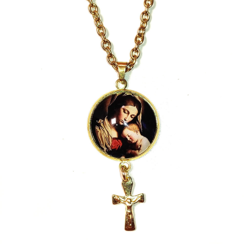 1 kép Szűz Mária medál, Jézus feszület charmmal és nyaklánccal, arany színben