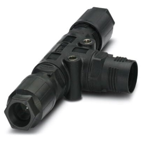 T-elosztó - QPD T 4PE 2X6-11 BK , Phoenix Contact, 1405403 QUICKON T-elosztó, fekete, 4+PE pólusú, 1,0 mm² ... 2,5 mm² / 690 V / 20 A, 6 mm ... 11 mm-es kábelátmérőhöz, két QUICKON-anyával