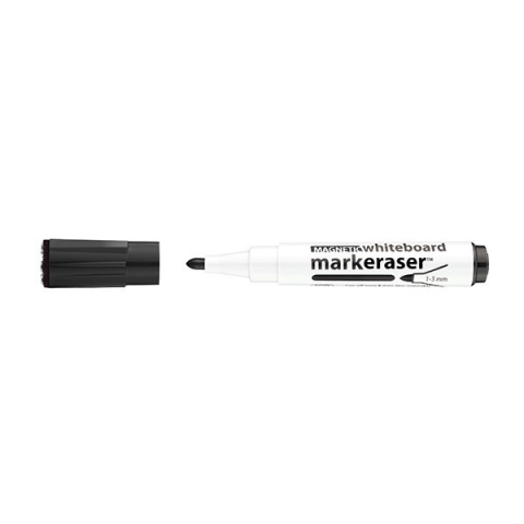 Táblamarker ICO Markeraser mágneses kupakkal törlővel fekete 1-3mm Multifunkciós táblamarker mágneses fehértáblára való írásra, rajzolásra. Speciális festékanyagának köszönhetően, néhány napig, kupak nélkül sem szárad be. A kupakban elhelyezett mágnes