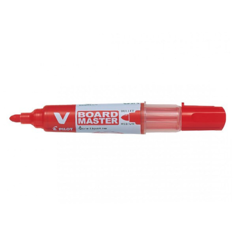 Táblamarker PILOT V-Board Master kerek piros Folyékony tintás táblamarker, cserélhető betéttel, kerek heggyel.Újrafelhasznált alapanyagból készült.