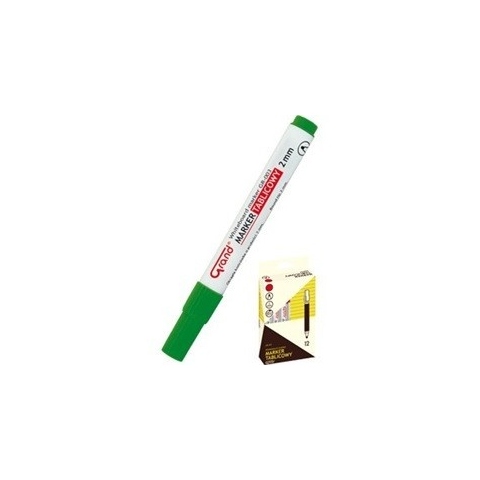 Zöld táblafilc, nagy, kerek hegyű. Letörölhető filctoll fóliás térképekhez. Szárazon vagy nedves szivaccsal letörölhető filctoll, kerek heggyel, fehértáblákon, fóliázott térképeken használható. Írásvastagság: 2 mm. Íráshossz: 260 m.