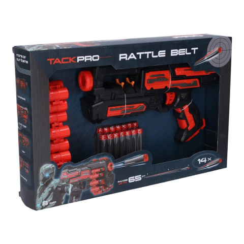 Mérj kivédhetetlen csapást ellenfeleidre ú játék fegyvereddel! A Tack Pro Golyószóró 14 szivacsnyíllal elengedhetetlen kelléke lesz bármilyen fegyveres ütközetnek. A felhúzható játék golyószóróba 14 darab szivacsnyilat tudsz beletölteni, így sosem kell aggódnod attól, hogy tárad túl hamar kifogyna. A golyószóró 30 cm hosszúságának köszönhetően praktikus méretű, így akár magaddal is vihetted egy hosszabb utazásra. Hívd ki barátaidat egy küzdelemre és m