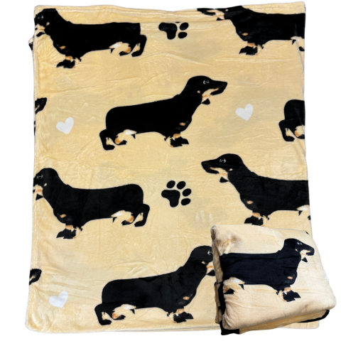 1 kép Tacskó mintás wellsoft pléd, 200 x 230 cm, bézs