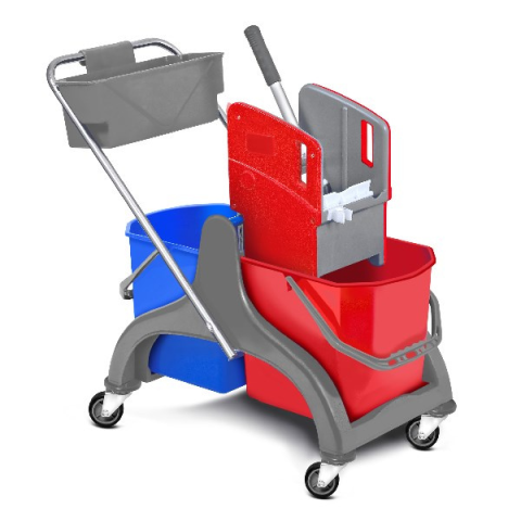 Takarítókocsi műanyag vázas 2x25 L vödrös + prés + kosár - 12.02033 - Takarítóeszközök -