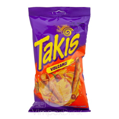 TAKIS Chips Queso Volcano 100 g Fedezd fel a tűzforró és krémes sajt ízének játékát a TAKIS Queso Volcano 100 g-os chipsekben. Ezek a roppanós tortilla tekercsek egy forró chili- és sajtmezőbe repítik a szádat, miközben a volcanic hangulat folyamatos