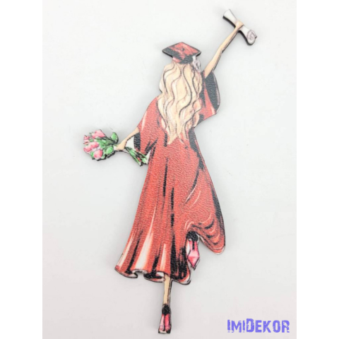 Taláros ballagó lány táblácska - Piros dekorációs kellék 1 kép