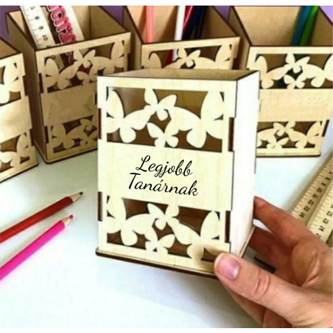 Ez a fából készült, lézervágott tolltartó egyedi ajándék ötlet tanároknak. Személyre szabható designja és praktikus funkcionalitása kiváló választás lehet tanári kollégák vagy mentorként szolgáló személyek számára. Tanári Köszönetajándék: E