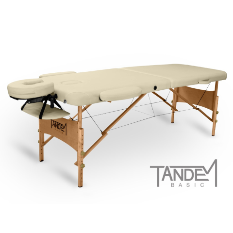 1 kép TANDEM Basic-2 összecsukható és hordozható favázas masszázságy Szín: krém