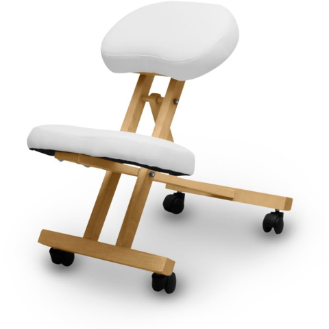 Az ergonómikus térdeplőszék egészségesebb ülésmódot biztosít. A térdeplőszék használata megfelelő helyzetben tartja a gerincoszlopot ülés közben. Szerkezete masszív, világos színű fából készült, vízzel és olajjal szemben ellenálló kárpitozással. Magassága három különböző pozícióba állítható.