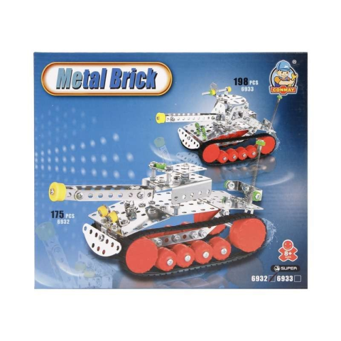 Szerelj össze egy lánctalpas harckocsit fém elemekből! A Tank 175 darabos fém építőjáték műanyag és fém alkatrészeket, tengelyeket, rengeteg csavart és anyát tartalmaz, amikből kétféle harckocsit is össze tudsz szerelni. Szereld fel a harckocsira az antennát, az ágyúcsövet és a lánctalpakat is, miközben rakod össze a tankot, fejlődik a kézügyességed és a szerelési érzéked is! A Tank 175 darabos fém építőjáték készlet csomagolási méretei: 27 x 4 x 24 c