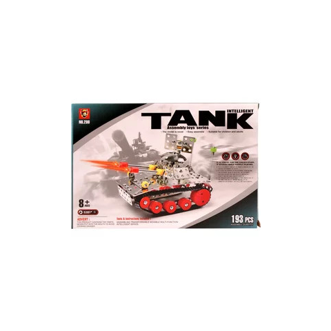 Szerelj össze egy duplacsövű, lánctalpas tankot! A Tank 193 darabos fém építőjáték fémből és műanyagból készült alkatrészeket, tengelyeket, rengeteg csavart és anyát tartalmaz, amikből egy légvédelmi, radarral felszerelt harckocsit tudsz összeszerelni. Erősítsd fel a harckocsira az antennákat, az ágyútornyot és a lánctalpakat is, miközben rakod össze a tankot, fejlődik a kézügyességed és a szerelési érzéked is! A Tank 193 darabos fém építőjáték kés