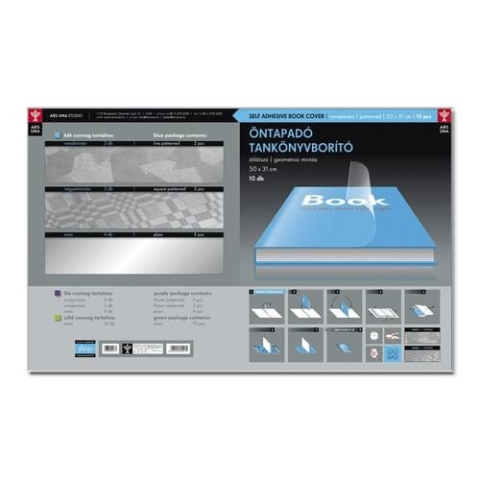 Öntapadós műanyag tankönyvborító, 50x33 cm méretű. Egy csomag 10 db átlátszó borítót tartalmaz. Méretre vágható. Tankönyvekhez és füzetekhez is használható.