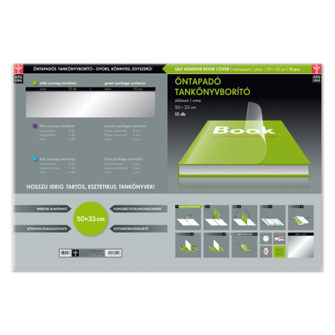 Tankönyvborító öntapadó, 50x33cm, 10 ív/csomag, Ars Una, víztiszta füzetborító 1 kép