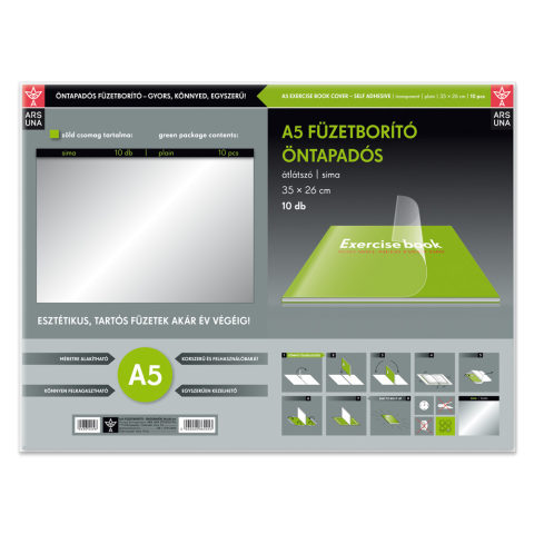 1 kép Tankönyvborító öntapadó, A5 35x26cm, 10 ív/csomag, Ars Una, víztiszta