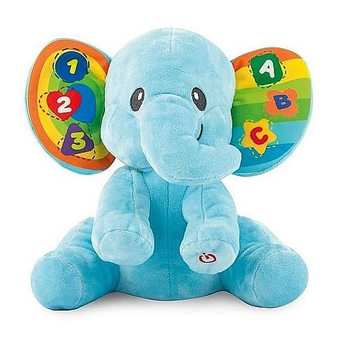 Tanulj velem elefánt bébijáték - 24 cm Énekelj együtt a kék plüss elefánttal! A Tanulj velem elefánt bébijáték egy nagyon puha plüssből készült elefánt, aki játékos módon, dalokkal tanítja meg a számokat és az ABC-t Az elefánt színes füleit nyomkodva