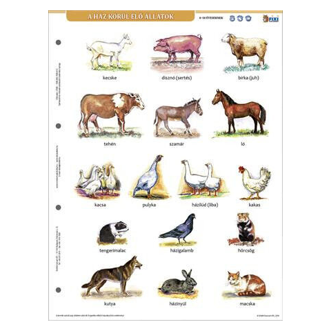 Tanulói munkalap, A4, STIEFEL A ház körül élő állatok 2 oldalas, lefűzhető, írható-letörölhető Jópofa illusztrációkkal elkészült legújabb tanulói lapunk a ház körül élő állatok. Gyakorolj! A hátoldal felirat nélküli, ismerd fel az állatokat és írd rá n