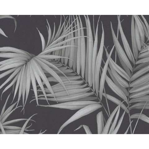 Sötét alapon pálmalevél mintás tapéta.