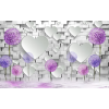 1 kép Tapéta lila pitypang, fehér téglafal, szívek, 350 x 200 cm