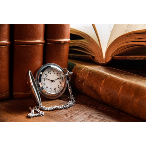 1 kép Tapéta Összetétel59 Óra, könyvek, antik fa asztal, 350 x 200 cm