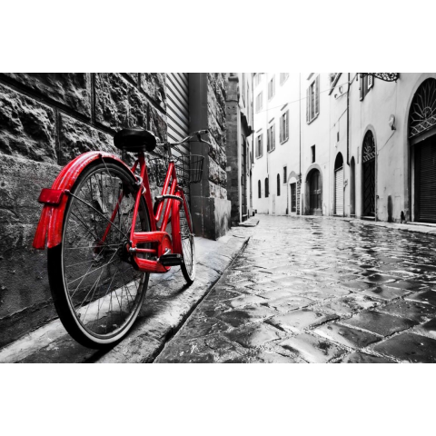 1 kép Tapéta Piros kerékpár, utca köbös kövekkel, retro, 300 x 250 cm