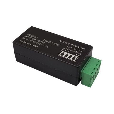 Tápfeszültség átalakító, 24V AC-ről 12V DC-re, 1A. - Bemeneti feszültség: 20V-28V AC - Kimeneti feszültség: 12V DC stabilizált. - Max. 1000mA terhelhetőség. - Méret 30 mm x 23 mm x 75mm. Tápfeszültség átalakító, 24V AC-ről 12V DC-re, 1A. - Bemeneti fe