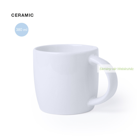 Fehér kerámia bögre a hosszúkávé szerelmeseinek Űrtartalom: 380 ml Méret:ø90×86 mm Rendelésre: 8-12 nap! Egyedi dobozban adjuk ki. Emblémázási adatok: Max. méret:60mm x 60mm Származási ország CN VTSZ 6912002910 741644