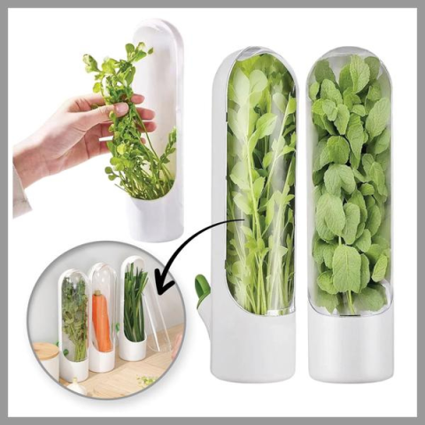 Tárolóedény friss fűszerek számára POJ08Fűszer- és zöldségtároló edény a hűtőszekrénybeAz edény jó vízállósággal rendelkezik, segít megőrizni a fűszerek és zöldségek megfelelő páratartalmát, meghosszabbítva frissességüket.Használati utasítás:Öblítse le és szárítsa meg a választott fűszereket (pl. bazsalikom, menta, snidling stb.), majd helyezze őket a fűszer-tároló kapszulába.Zárja le az elülső fedelet, amíg kattogást nem hall.Töltse fel a t