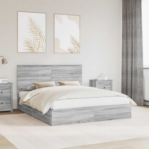 Tárolós Ágy fejtámlával Szürke Sonoma 160 x 200 cm Faanyag ágy és ágykellék 1 kép