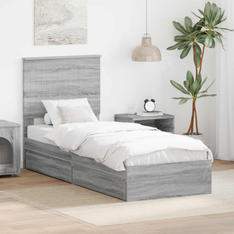 Tárolós Ágy fejtámlával Szürke Sonoma 75 x 190 cm Faanyag ágy és ágykellék 1 kép