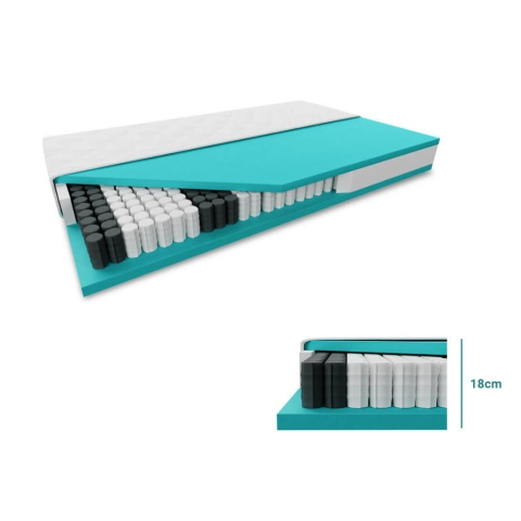 Zsákrugós matrac SOMNIA 160 × 200 cm-es méretben és 18 cm-es magassággal nagyszerű választás azoknak, akik kiegyensúlyozott kényelmet, támaszt és egészséges alvást keresnek. A matrac alapját zsákrugók és kiváló minőségű PUR hab kombinációja képezi, ami biztosítja a stabilitást, kiváló levegőkeringést és hosszú élettartamot.