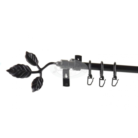 A TATA fekete 1 rudas 300 cm-es karnis szett tartalma: 1 db 300 cm-es fekete fém karnisrúd 2 db Tata típusú fekete fém végzáró 3 db falra szerelhető fém konzol a felszereléshez szükséges tiplik és csavarok 30 db fekete műanyag karika fekete színű ráncsze