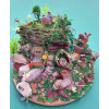 Parafa alapon, természetes anyagok felhasználásával készült hangulatos erdei életkép fákkal, virágokkal, állatokkal és led világítással. Mérete: 20×20 cm